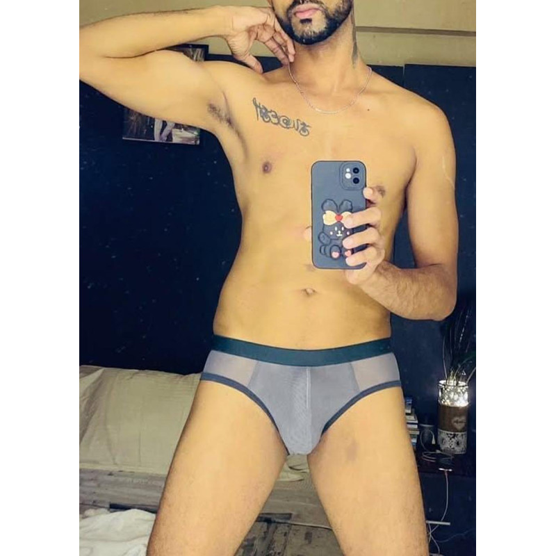 The AZRA sheer mesh brief has a soft, lightweight body designed to be transparent and seductive with double layered pouch which is non transparent . But the sheer fabric will also ventilate you. Therefore, it’s breathable, helping to keep you cool and dry for longer. It will help wick away moisture. Thus, perfect for the guy with an active lifestyle. The brief has elastane in it, allowing the brief to mould perfectly to your body for a form-fit. Contrast color 1cm lycra leg binding for comfortable fitting.